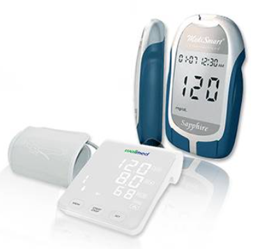 Combo Máy đo đường huyết Sapphire Plus & Máy đo huyết áp Wellmed FDBP-A4